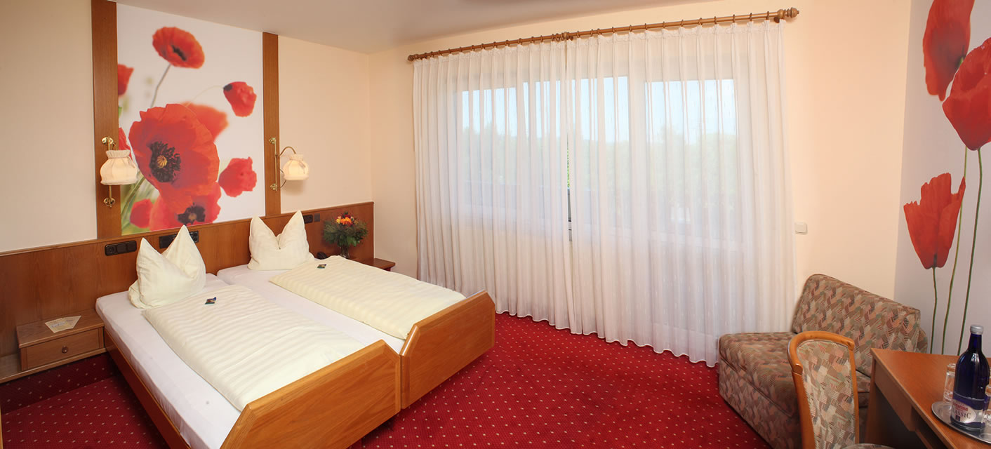 Unsere modern ausgestatteten Zimmer sind mit Dusche/WC, Fön, Telefon, Radio und Kabel-TV und kostenfreiem Internetzugang versehen, teilweise auch mit Balkon.